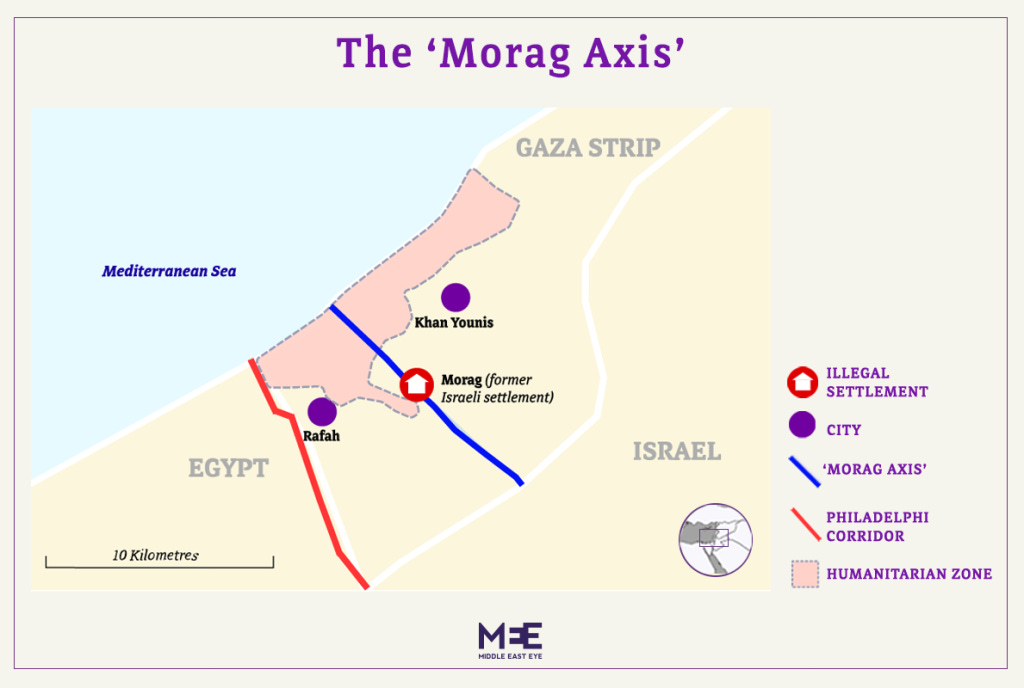 Morag was a Jewish settlement that once stood between Rafah and Khan Younis, so the use of the name suggests the new corridor is designed to separate the two southern cities.